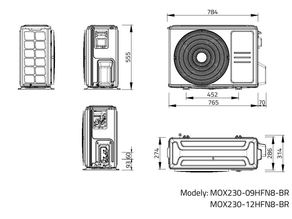 | Rozměry venkovní jednotky: | 765 x 555 x 303 |