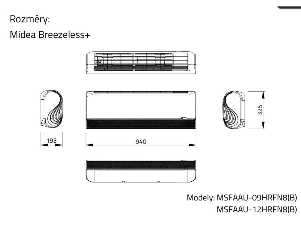 | Rozměry vnitřní jednotky: | 940 x 325 x 193 |