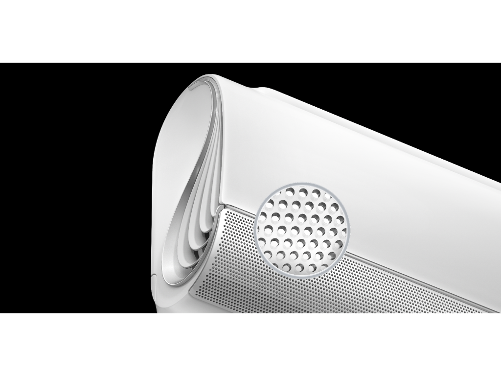 BreezeleSS+ je první zařízení na světě, které využívá perforovanou technologii s dvojitými lamelami k zajištění rovnoměrného a hedvábně jemného proudění vzduchu. Vzduch proudí přes 7 928 drobných otvorů ve tvaru přesýpacích hodin a jemně ochlazuje místnost zcela bez průvanu. Díky bočním S-tvarovaným výdechům proudí chladný vzduch ze všech směrů, což zajišťuje rovnoměrnou teplotu v celé místnosti. Tato technologie nejenže zvyšuje komfort chlazení, ale zároveň poskytuje zcela přirozený pocit.