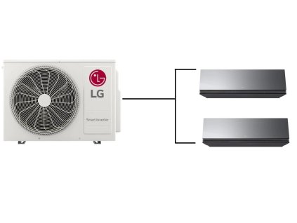 Multisplitová klimatizace od značky LG. Klimatizace obsahuje vnější jednotku ( MU2R17.U13 ) o výkonu 4,7kW a 2 vnitřní multisplitové jednotky AI Air Mirror o výkonu 2,5kW + 3,5kW.